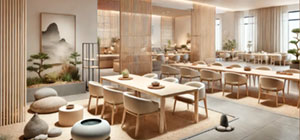 - Separadores de espacios acústicos: Utiliza biombos o separadores de espacio con propiedades acústicas para dividir el comedor en áreas más tranquilas.