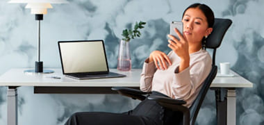 Aunque las mesas elevables han tenido más auge en los home-office, también han tenido una progresiva y creciente aceptación a la hora de configurar despachos. Esto se debe a que son especialmente cómodas y versátiles, sobre todo para aquellas personas que trabajan muchas horas frente a un ordenador ya que les permite cambiar de posición rápidamente. En la siguiente imagen puedes observar como la mesa elevable Skala de Forma 5 combina a la perfección con la silla ergonómica para uso intensivo con respaldo y cabezal altos.