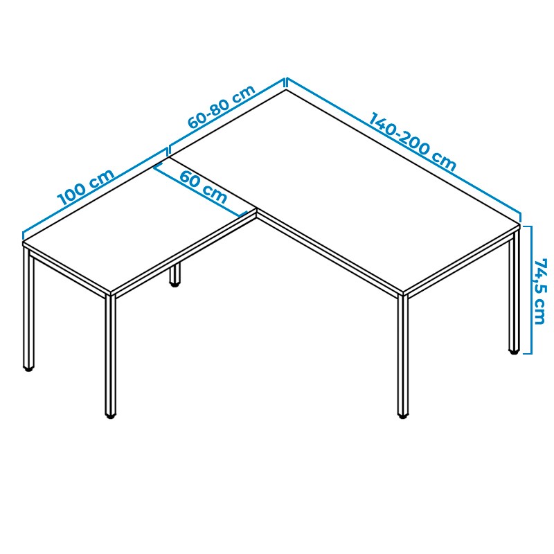 Mesa en L para Oficinas Fondo 60 o 80 cm Line de Kesta