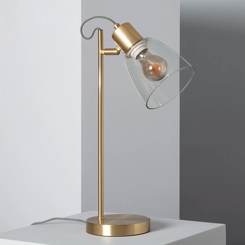 Lámpara de Mesa Moderna Dorado y Cristal Clar