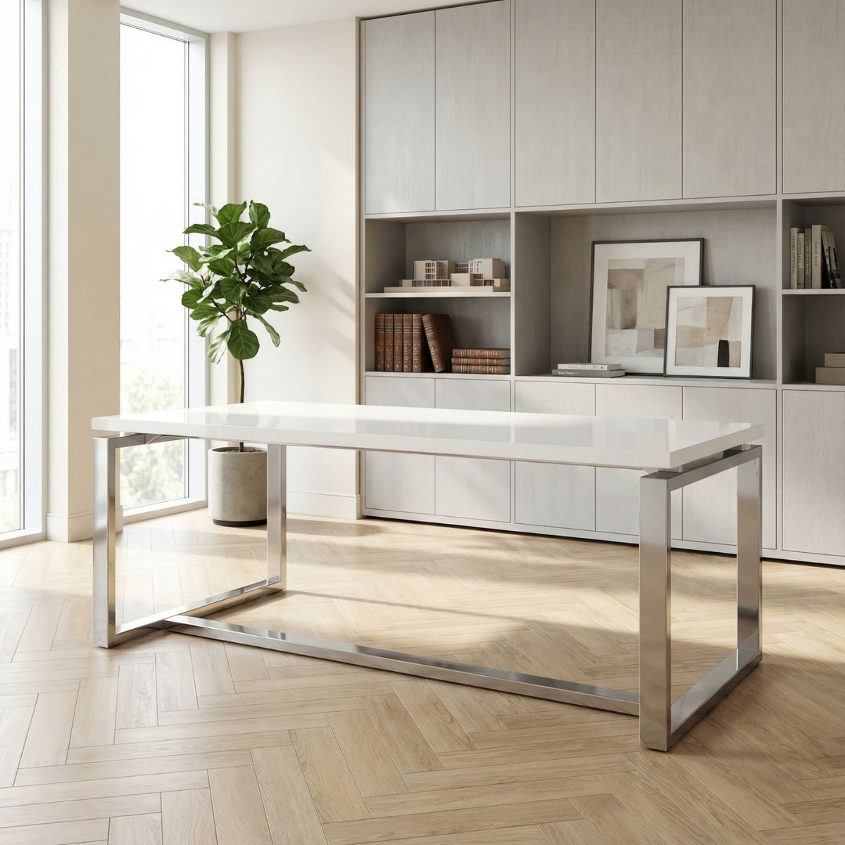 Mesa Dirección Vidrio Blanco Volga de Euromof