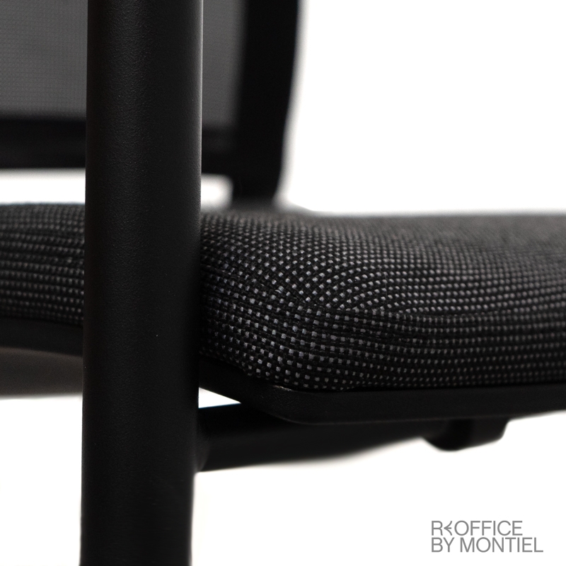 La silla ergonómica PLEASE II, está tapizada en tela con posibilidad de color a elegir. La carcasa trasera está tapizada en similpiel color negro. la estructura de este modelo es muy resistente, su respaldo está dividido en dos partes tiene un gran flexibilidad y, por último, su base está fabricada en acero pintado en epoxy gris.