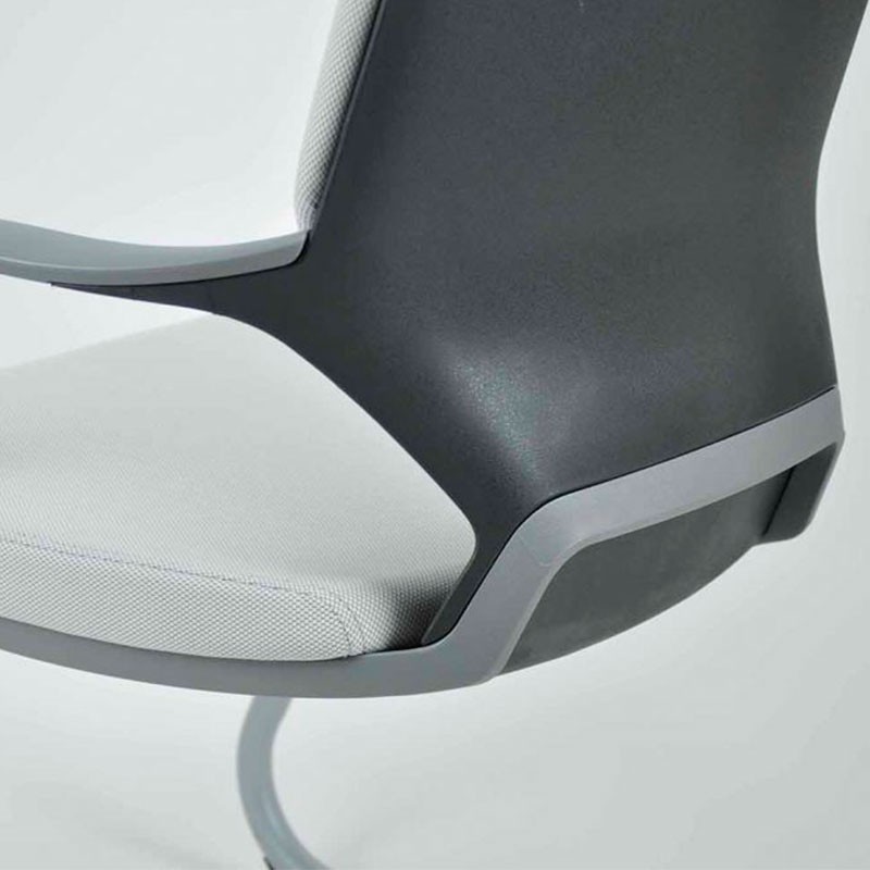 La silla ergonómica PLEASE II, está tapizada en tela con posibilidad de color a elegir. La carcasa trasera está tapizada en similpiel color negro. la estructura de este modelo es muy resistente, su respaldo está dividido en dos partes tiene un gran flexibilidad y, por último, su base está fabricada en acero pintado en epoxy gris.