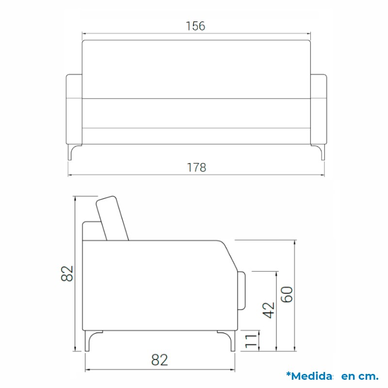 - Alto: 82 cm. / Ancho: 73-178 cm. / Fondo: 82 cm. /
